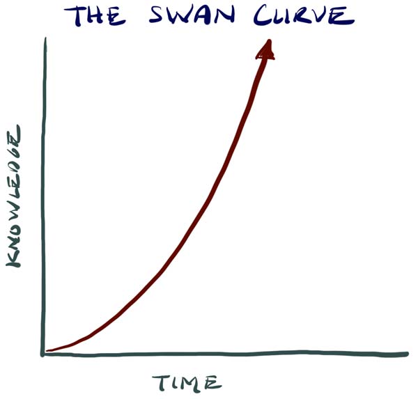 Being in a business surrounded by the complexity and mystery of what is going on around you – one of the big challenges in business is just keeping track of what’s happening – is very much like being an infant and trying to understand what language is. The difference is that when you and I were babies, we were EXTREMELY motivated to figure out what was going on and make sense of it. 99% of people in a business are a little bit interested, but certainly not desperately interested in figuring it all out. But if you are desperately interested, and you realize that every subject is infinite and infinitely interesting, and that there is no limit to the speed at which you can learn, something magical can happen. You start to ride the Swan Curve.